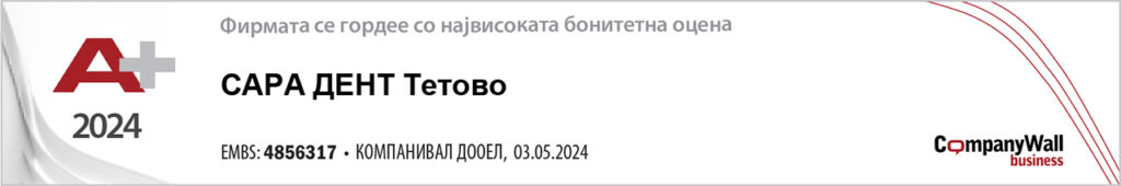 Sara Dent is a premier dental clinic located in Tetovo, North Macedonia. Led by Dr. Fadil Mehmeti, our team of experienced dental professionals is dedicated to providing you with top-quality dental care in a comfortable and welcoming environment. We use the latest technology and techniques to ensure that you receive the best possible care.